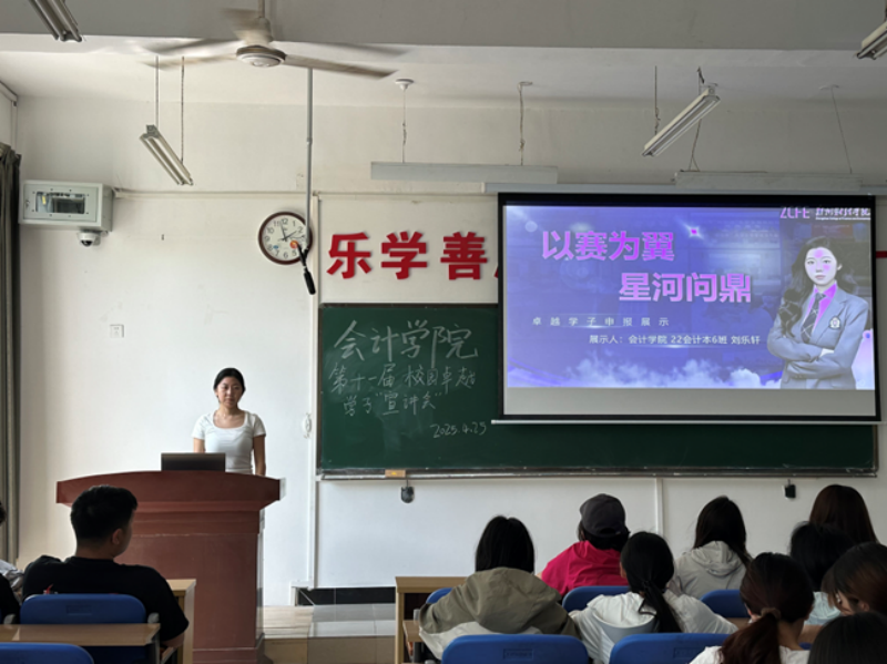 卓越学子雷欣雨表示:扬鞭追梦,不负韶华。在学习方面,她专注财务管理学科的学习,以扎实的学习态度和优异的成绩脱颖而出,多门核心课程成绩位居前列,凭借突出表现斩获多项专业荣誉,为职业发展奠定坚实基础。在学习工作方面,她作为财思学社干部,积极组织活动,营造浓厚的学习氛围,并负责相关管理工作,确保各项工作的有序开展。在竞技比赛方面,她敢于绽放光芒,积极参加7项英语类竞赛,在“外研社·国才杯”等赛事中表现出色,荣获多个奖项。通过竞赛提升英语能力,打破专业壁垒,实现学科融合发展。同时,雷欣雨也向同学们分享了自己平衡专业与英语学习的经验,并鼓励同学们要勇于挑战,冲破认知藩篱,在探索中拓宽知识边界,让每一次尝试都成为成长的阶梯。