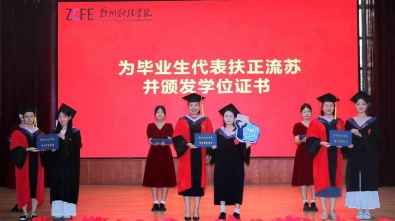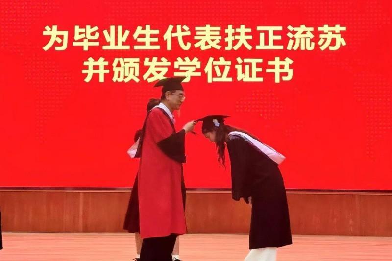 天天操狠狠操院长管洲、党总支书记温毓敏、副院长张荣静、教研室主任赵欢欢、刘涛、段莎为获得学士学位的毕业生代表扶正流苏、颁发学位证书。